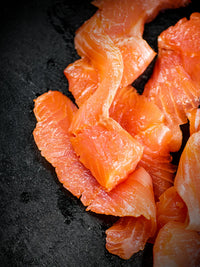 Recortes de trucha sin piel, de 10 a 80 grs cada uno.